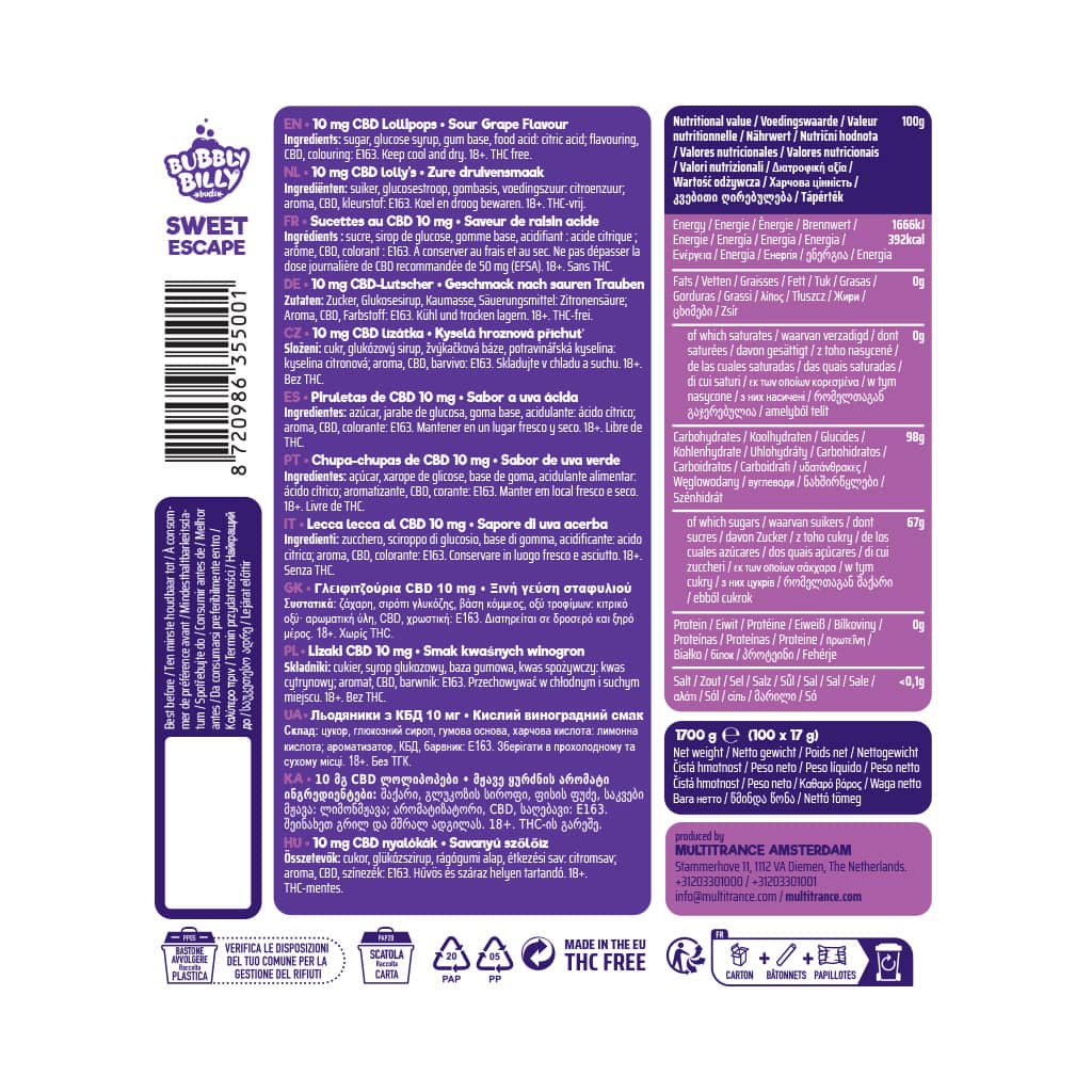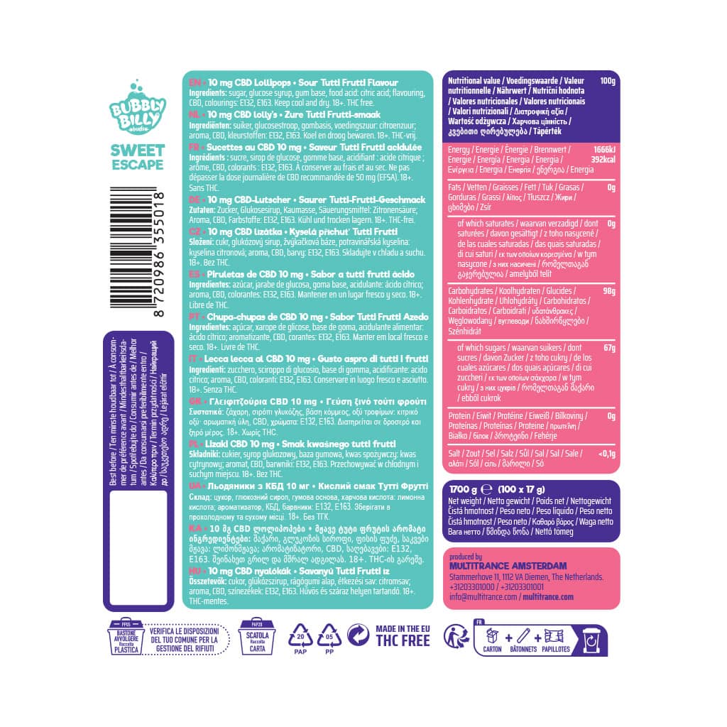 Multitrance Amsterdam, pioneers in cooking with cannabis since ’95, is your go-to destination for CBD Amsterdam products and a wide selection of cannabis-infused treats and drinks. As dedicated producers, wholesalers, and retailers, we invite you to explore a world where wellness meets indulgence, from our iconic Bubbly Billy CBD Lollipops and rich Cannabis Brownie Space Cake to our soothing Cannabis Green Tea blends and uplifting Amsterdam Energy Drinks.