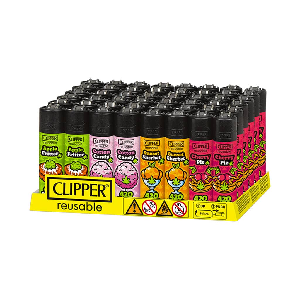 The Clipper Premium Smoking Lighters – 420 Weeds bring together vibrant colors, playful illustrations, and unmistakable 420-inspired themes. Featuring dessert-style graphics and bold cannabis-inspired artwork, this collection adds a fun, eye-catching twist that stands out instantly on any retail counter.