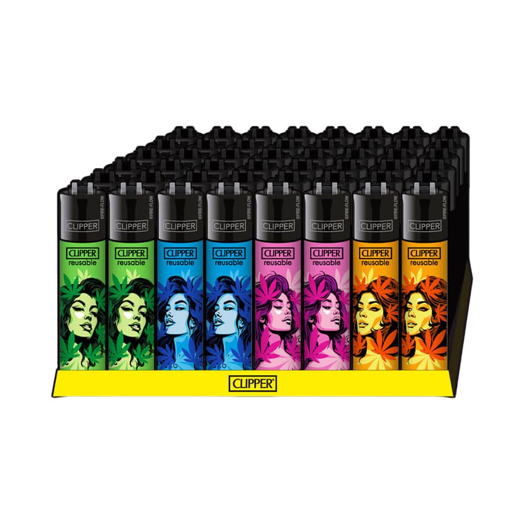 The Clipper Premium Classic Mary Janes Lighters Display brings bold color and eye catching artwork together in a reusable, reliable design. Each lighter features a vibrant portrait style illustration in four striking colourways, giving the collection strong visual impact and a modern, artistic feel.