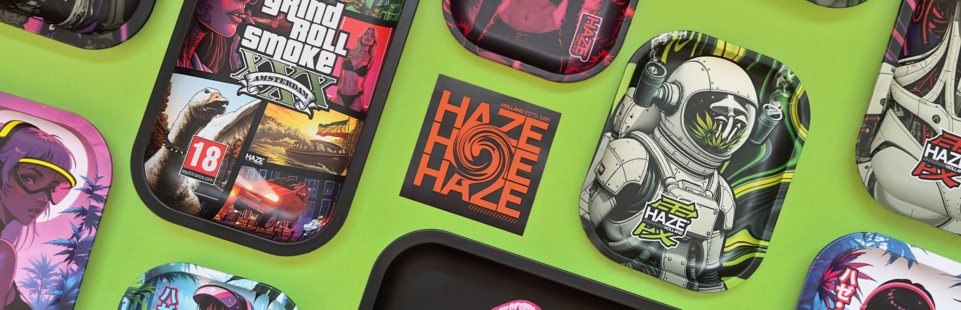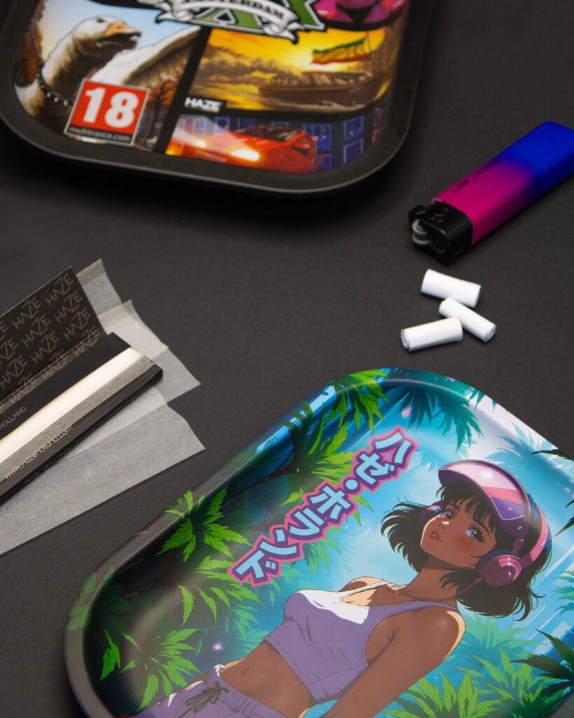 Haze Holland trays are built around distinct visual worlds, each crafted to resonate with a different rolling style or personality. Instead of relying on recycled artwork, the brand focuses on designs that feel intentional, expressive, and worthy of being part of your setup.